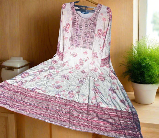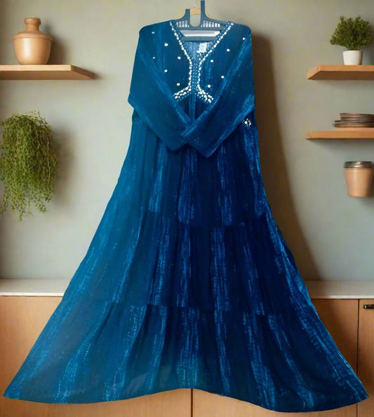 Blue River Anarkali Long Gown - Mirror Work Magic