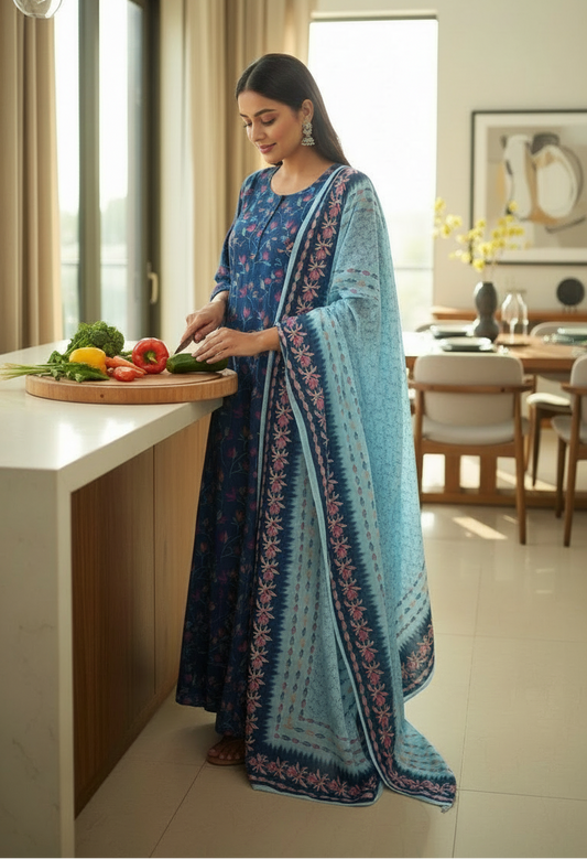 Umbrella Type Kurti - Blue floral