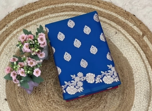 Banarasi Katan Soft Silk Saree - Zari Border and Jacquard Blouse - BANAR-008-royalblue