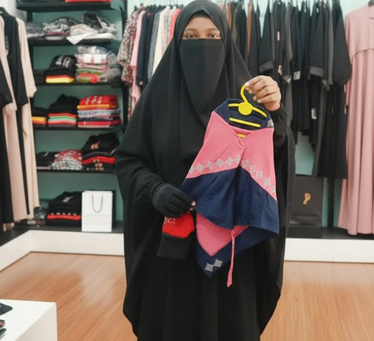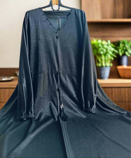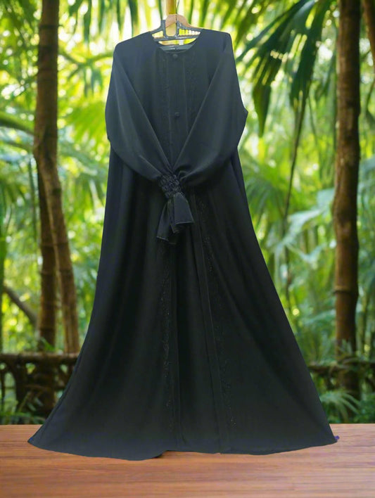 Black Ocean Double Layer Burqa – Blue and White Stone Elegance