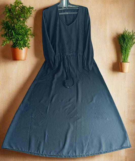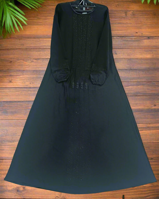 Blackberry Stonework Burqa – Premium Nida | Free Size Elegant Wear