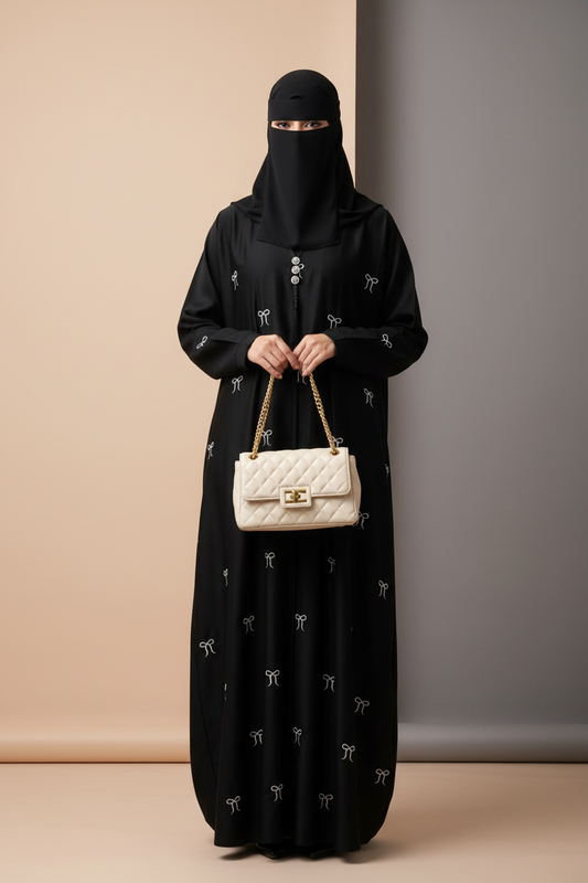 Black Bow Embroidery Abaya