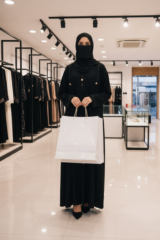 - Matching Hijabs & Scarves: Pair your abaya/burqa with a matching hijab or scarf for a coordinated look. Opt for a white scarf to match the black, or experiment with bold, contrasting colors to add a unique touch.