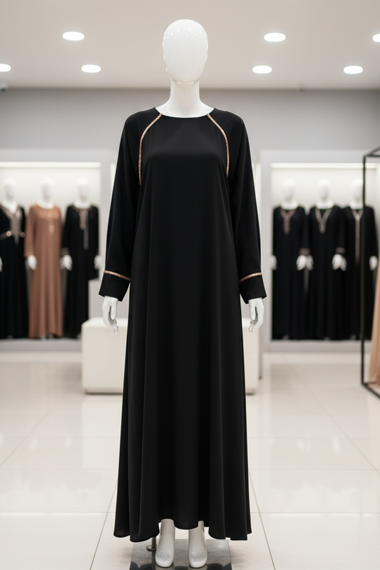 Black Grace Gold Line Umbrella Abaya