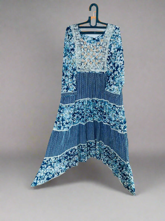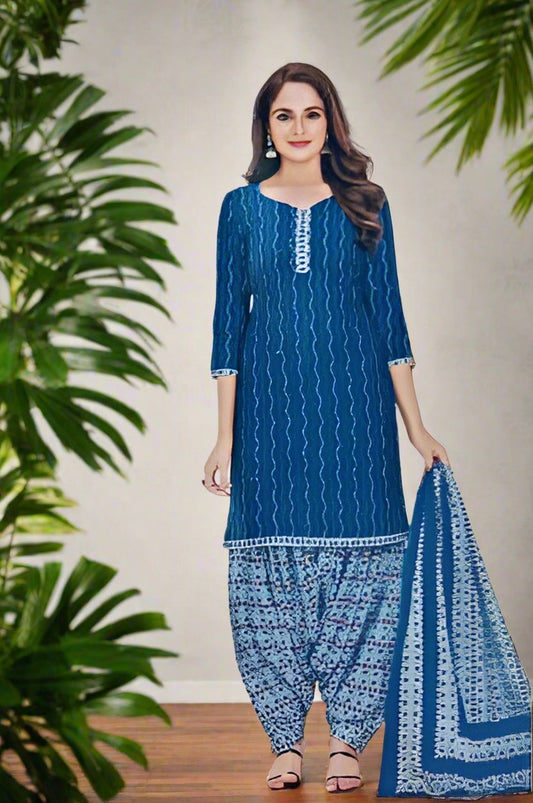 Pranjul Brand Cotton 3PC Set: Dark Blue Top, Blue Bottom & Dupatta