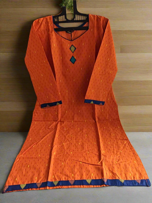 Pranjul Brand Cotton 3PC Set: Orange Top, Blue Bottom & Dupatta