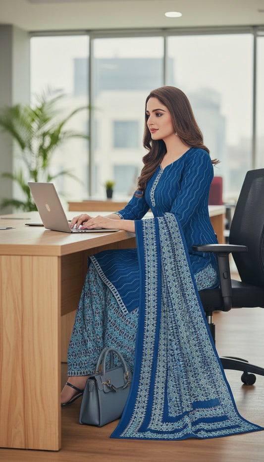 KUR-3PC-001 – Blue – Vatican Fabric – Premium Kurti - 3PC Set