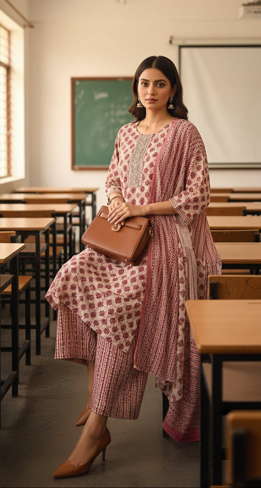 Straight Cut Kurta Pant Dupatta Set – 3Pc - Premium Collection