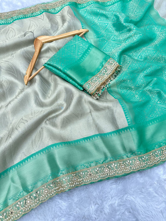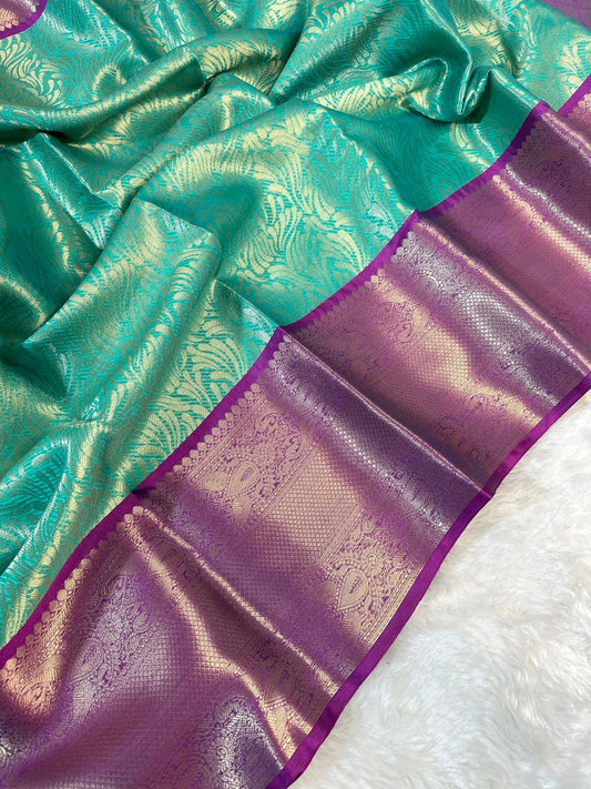 Banarasi Katan Dyeble Dupion - Meenakari Jaal Design & Dual Zari Weaves- Silk Saree