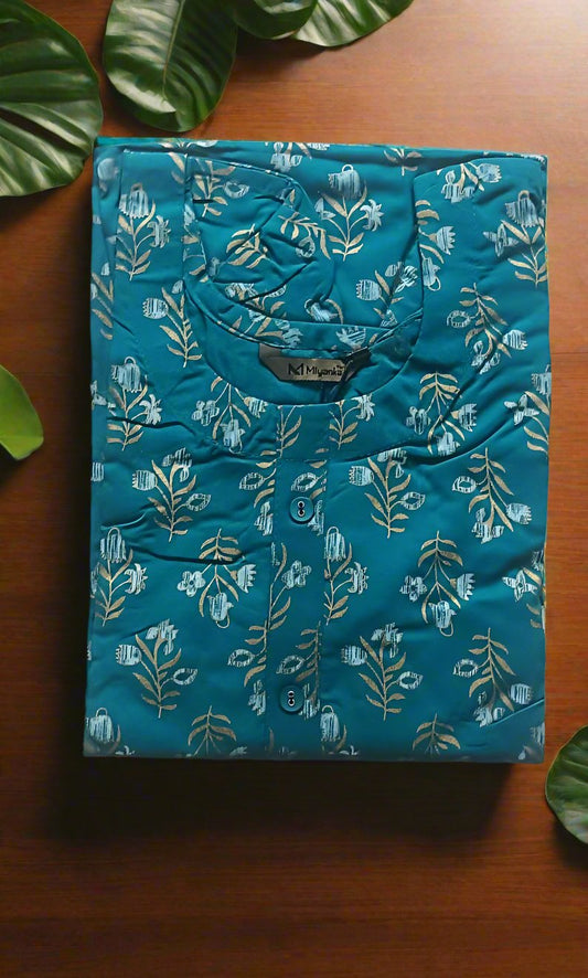 Straight Cut Kurti - Ocean Green