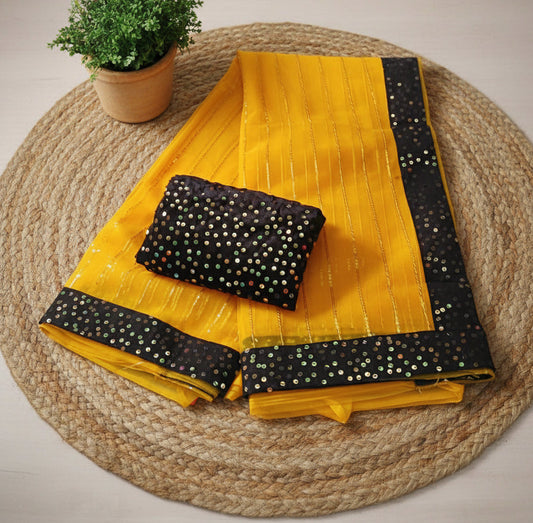Newly Married - Sequence Saree - Yellow