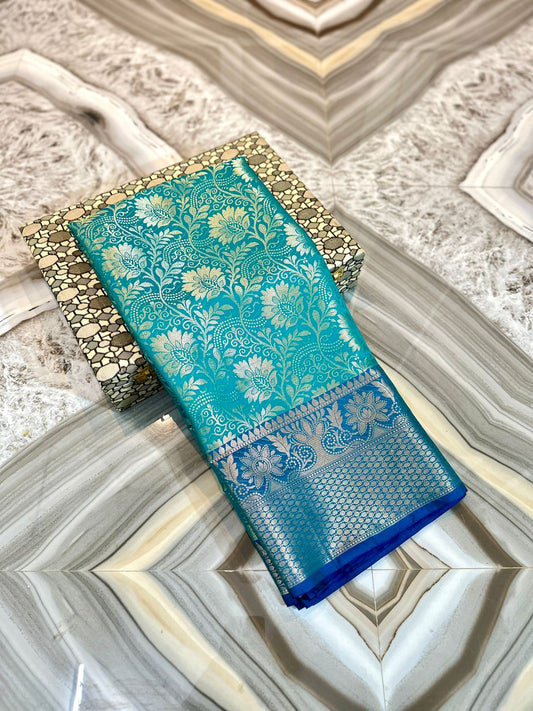 Banarasi Mina Laheriya Premium Blue Saree - BANAR-010
