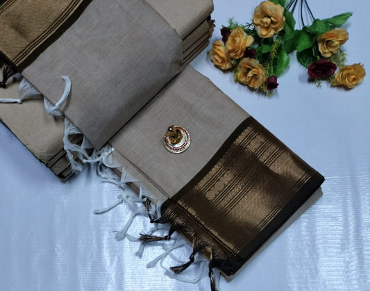 Banarasi Katan Soft Silk Saree - Zari Border and Jacquard Blouse - BANAR-008-Brown