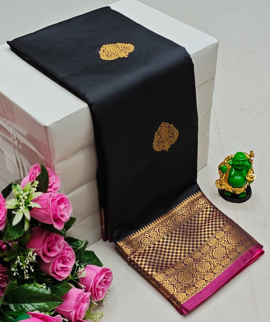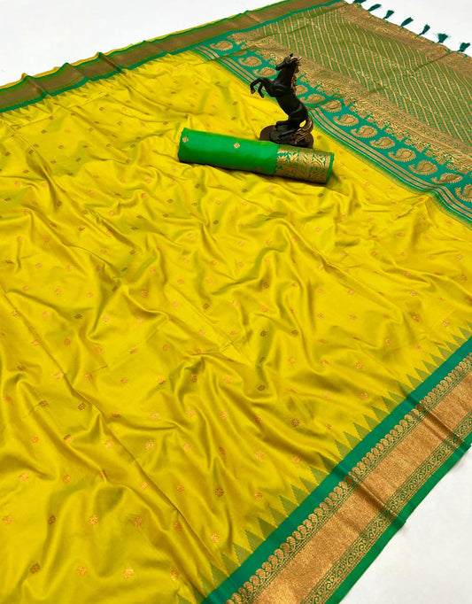 Premium Soft Silk Saree – Dual Zari Motifs - Narayan Border - Rich Pallu